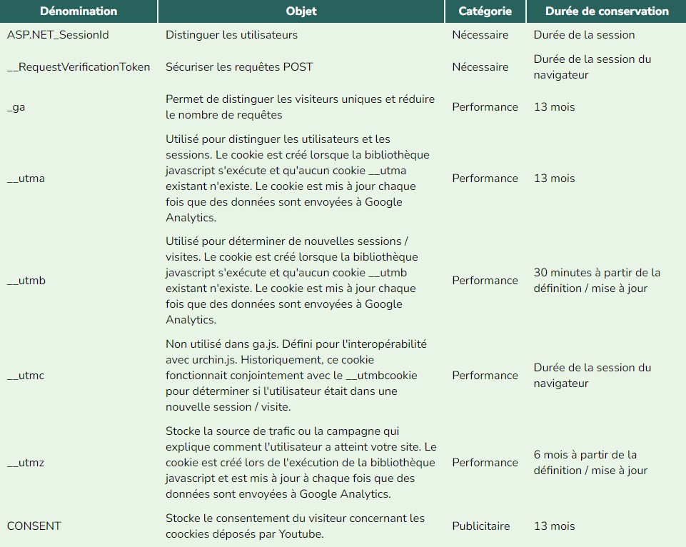 Les cookies nécessaires (obligatoires) : ces cookies sont nécessaires au bon fonctionnement du site internet. Ils ne peuvent pas faire l’objet d’un refus depuis l’outil de paramétrage présent ci-dessous ou au niveau de l’onglet « cookies » situé en bas de page. En effet, en cas de refus de dépôt et/ou d’enregistrement de ces cookies nécessaires (tels que les cookies à usage unique ou d’identification de sessions), les fonctionnalités du site serait réduites ou altérées et votre expérience sur notre site serait impactée. Si vous choisissez de refuser l’enregistrement de ces cookies dans votre navigateur ou si vous supprimez ceux qui y sont enregistrés, nous déclinons toute responsabilité pour les perturbations de navigation liées au fonctionnement dégradé de nos services.